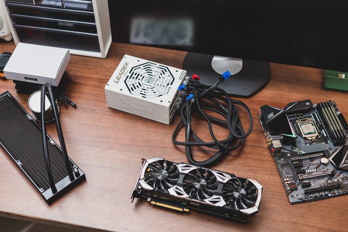 3.整机用途是GPU渲染,电源一开始也纠结功率选择是1000w还是1200w、1600w的型号,后面考虑超过1000w的型号差价会明显高很多,然后这台机子不超频,目前及未来目标主要是顶级单卡,所以电源选了振华LEADEX G1000W,价格差不多1w1块,性价比不错,实际使用的时候,常规家用(游戏娱乐)风扇基本都不转,只有长时间渲染的时候才转;一起搭配的还有定制了一套誉铼振华原装定制线,颜色纠结了许久,本来想订银色,不过他们没有银色的(类似只有白色),其它颜色偏向绿色、紫色这些冷色系,最后机主敲定了绿色,所以灯光部分在各种搭配调试之后,效果最佳的还是统一绿色,只不过亮度需要调整下,要不就有点瘆人,最后基本能发光的都调节为最低亮度,就差不多刚好了,也不刺眼。