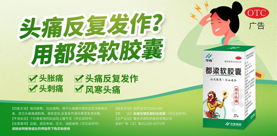 华森制药都梁软胶囊源自千年古方——宋朝《百一选方》中治疗头痛的经典名方“都梁丸”,由川芎、白芷两味药食同源的药材组成,具有祛风散寒、疏通升散、活血化瘀止痛的功效,可以改善头部的血液循环,缓解因寒邪所致的血管痉挛和神经紧张,从而减轻偏头痛的症状。其药物成分明确、药理作用清晰,能多环节多靶点地控制头痛发作,临床疗效显著。
