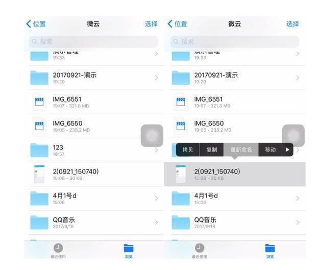 使用“文件”APP里的微云功能需要在App Store 下载 最新版本的微云APP(5.2.6),然后可以在【文件】-【微云】内查看和管理自己在微云里的存储文件,包括创建文件夹、文件的复制/移动/重命名/删除等具体操作;另外也支持与文件APP中其他应用进行文件移动。